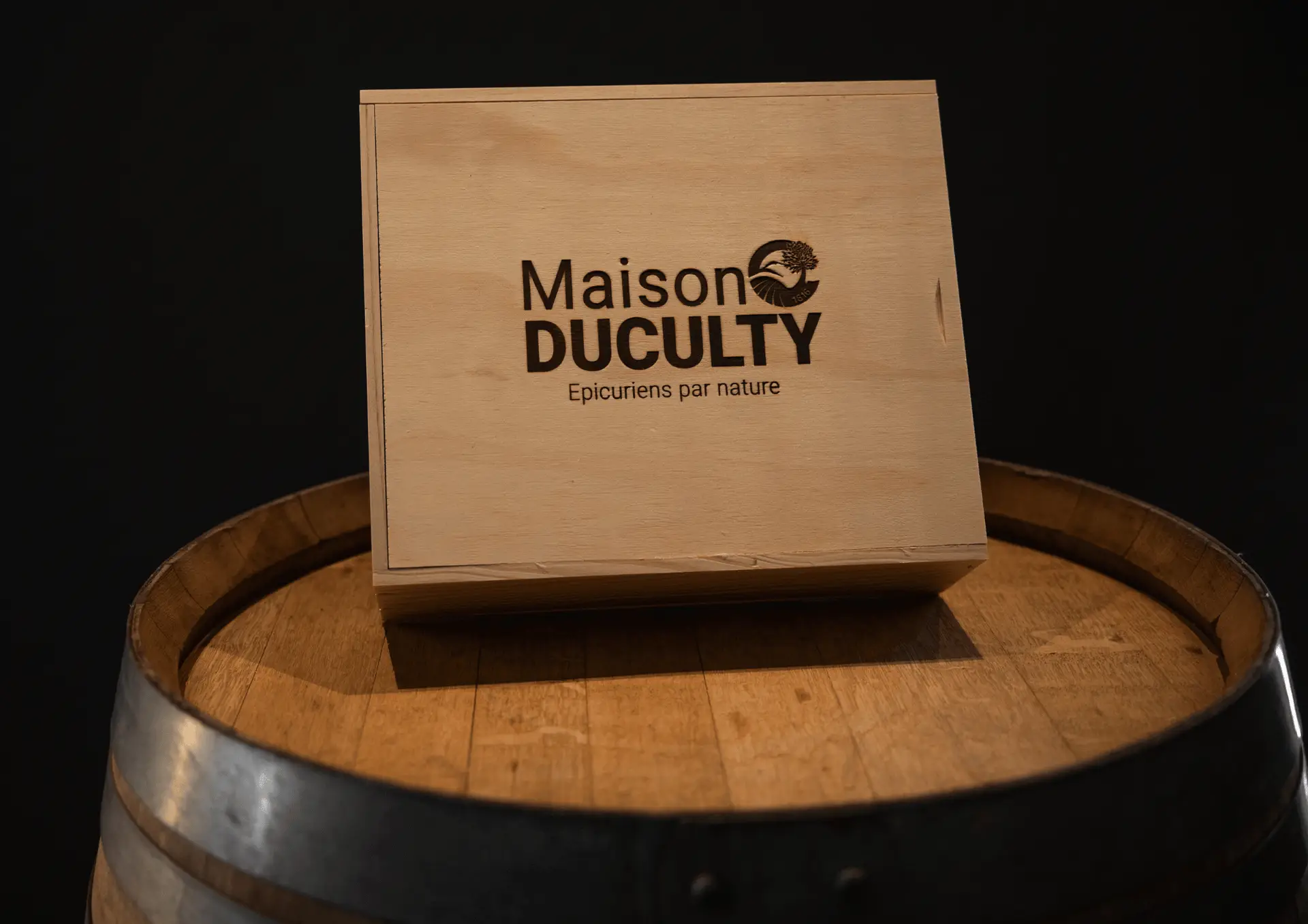 Coffret en bois Maison Duculty vendu vide, pour vous permettre de choisir vous-même les produits à y glisser et composer votre propre assortiment.
